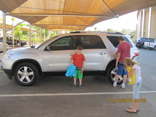 One of the biggest things that we did this past month was to buy a car - finally! Buying a car here is really an experience. Mark and I had gone down to Jeddah and we visited a couple of dealerships and finally decided to buy a GMC Acadia. We had considered a Suburban but since it was more money, I didn't really want to drive a big huge car around campus and we won't be taking many major road trips. It's interesting because the dealerships here are not run on commission so no one is in a huge hurry to sell you a car. We spoke with a salesperson to find the price and then we left. You can do financing through some dealerships but it is not the norm and you usually bring cash or a check before they will order the vehicle. So deciding how to get the money here was difficult - we had thought about transferring money from the states and then when we found out that that took 5-10 business days we thought that was too long and Mark went to the bank here to get a loan. We didn't need to finance a whole lot because we had quite a bit of the amount we needed but we thought, let's get the loan and just pay off in a couple months. Well getting the loan took almost 2 weeks :-) Like I said - nothing is fast here. Finally we had cash in hand and headed to the dealership. We arrived there on Thursday (think Sat) at about 1 pm - right when they close for the afternoon. I was not happy! There were some people still there shopping and talking to salesmen so we waited a little bit and then headed out. As we got into our car, a salesman came out and asked if we needed help! Yeah!!! So we went back in and paid for the car, registration, window tinting and insurance (all to the same person). We walked away with a paper saying that we would have our car on Monday - en shallah (God willing). God must have been willing because Mark went down to Jeddah to pick up our new car on Monday evening!!!